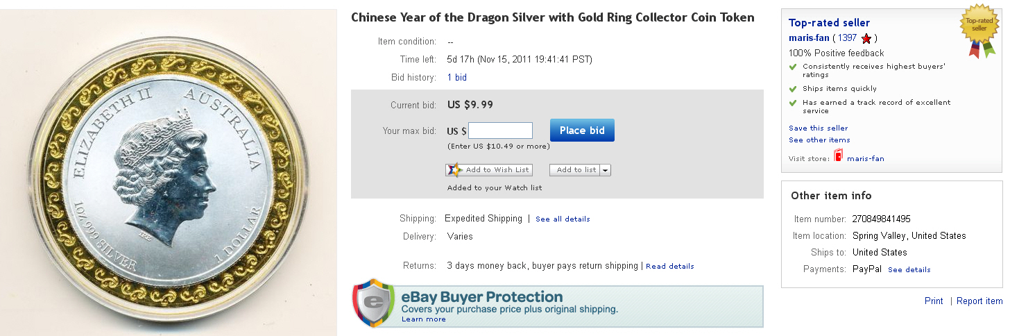 Noch da zu 10OZ bei 1Dollar Nennwert neben der Queen...