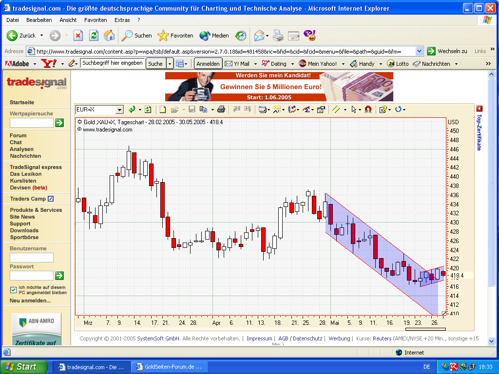 achtung beim gold muss die 424 nun halten sonst wirds dem gold wie dem euro in den letzten wochen gehen also vorsicht!