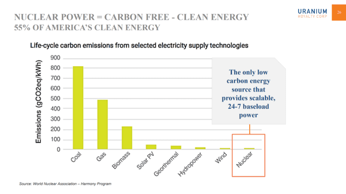 This chart from Uranium Royalty shows the relative carbon production of various sources of energy.