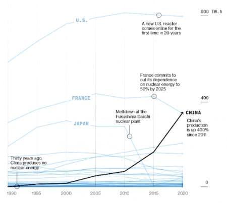 China is an interesting topic. The Chinese are in the process of the most successful nuclear buildout of all time. After a multi-year newbuild hiatus as the country transitioned to a new generation of reactors, the CCP recommitted to a national build program centered on domesticated reactor technology and continued investment into their nuclear fuel cycle. While Chinese inventories may seem large when compared to current consumption levels, they are actually quite small in relation to the country’s newbuild plan.[Blockierte Grafik: https://images.squarespace-cdn.com/content/v1/5e4186036224906dda452b93/6a80ce82-eff5-4dd8-bcee-a26dd55ccb43/China.jpg?format=1000w]