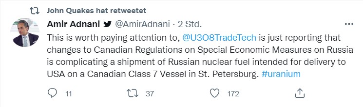 uf6 minimal rückläufig um 1$, aber auf hohem niveau 159$(kg)heute cco q2-2022 conference call! auch im webcast..