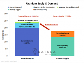 Unten ist ein Diagramm, das das aktuelle Angebots- und Nachfrageszenario zeigt. Wenn dieses Diagramm ein Hinweis darauf ist, könnten wir auf einen weiteren Anstieg der Uranpreise zusteuern. Der Ausstieg aus fossilen Brennstoffen zugunsten sauberer Grundlastenergie wie Uran in Verbindung mit intermittierenden erneuerbaren Energiequellen bietet einen emissionsfreien, zuverlässigen und skalierbaren Brennstoffstapel. Japan ist nicht allein in seinem Streben nach Eindämmung der Treibhausgasemissionen. Dies ist ein weltweites Ziel, und ich glaube, dass die Dekarbonisierung die größte risikobereinigte Anlagemöglichkeit meines Lebens darstellt..."