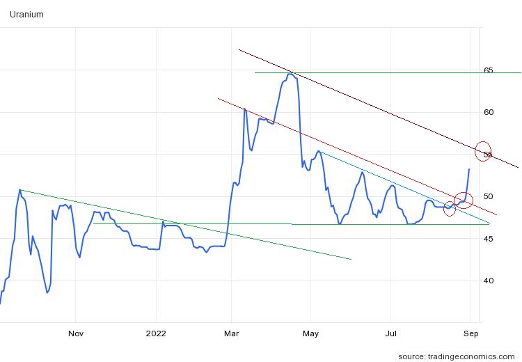 Dass dies für Uran optimistisch ist, zeigte sich, als die Uranaktien in den Nachrichten um 8 bis 15 % stiegen."