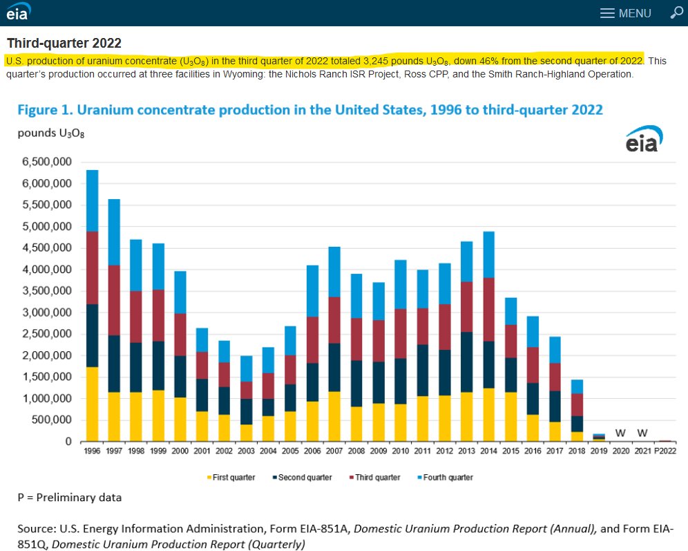 Aber woher kommt denn dann das ganze Uran wenn jahrelang nur 2/3 bis 3/4 der notwendigen Menge produziert wird? Der Spotmarkt und die vergangene Überproduktion muss ja riesig sein. Sput hat natürlich gewaltig Tempo rausgenommen. Ab und zu kaufen sie mal 150.000 Pfund da, 200.000 Pfund dort.