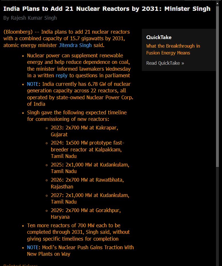 The long-term low-emission development strategy - or LT-LEDS - submitted by India to the United Nations Framework Convention on Climate Change (UNFCCC) includes a three-fold increase in nuclear energy capacity by 2032 and will also explore the potential deployment of small modular nuclear reactors (SMRs).