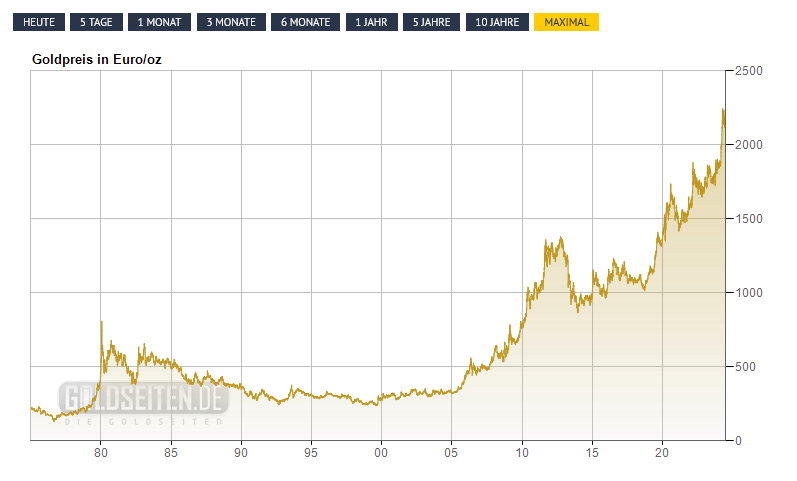 Kaufkurse sind erst bei nochmals MINUS 2 %, also bei ca. 2180 € /Oz.