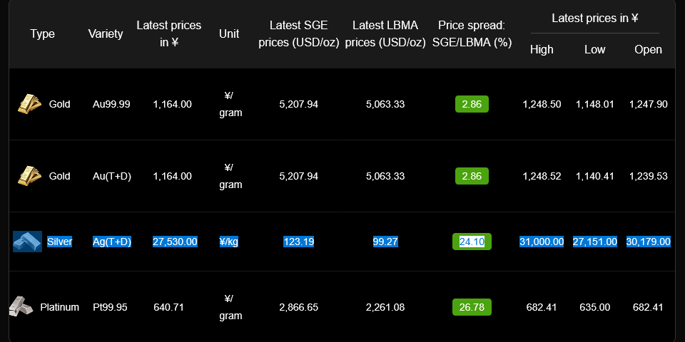 24 % Spread beim Silber ![]()
