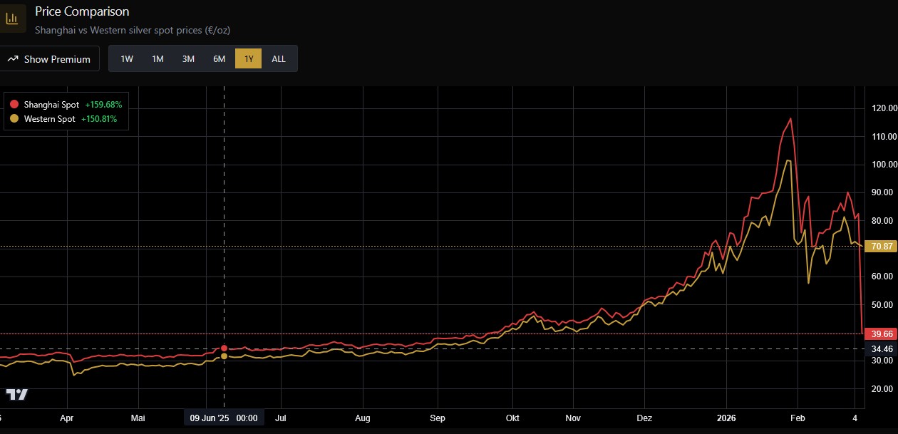 Dazu müsste schon auch Gold deutlich tiefer. Silber macht sowas nicht von allein. Und das während des größten Kriegsausbruchs seit Jahrzehnten?