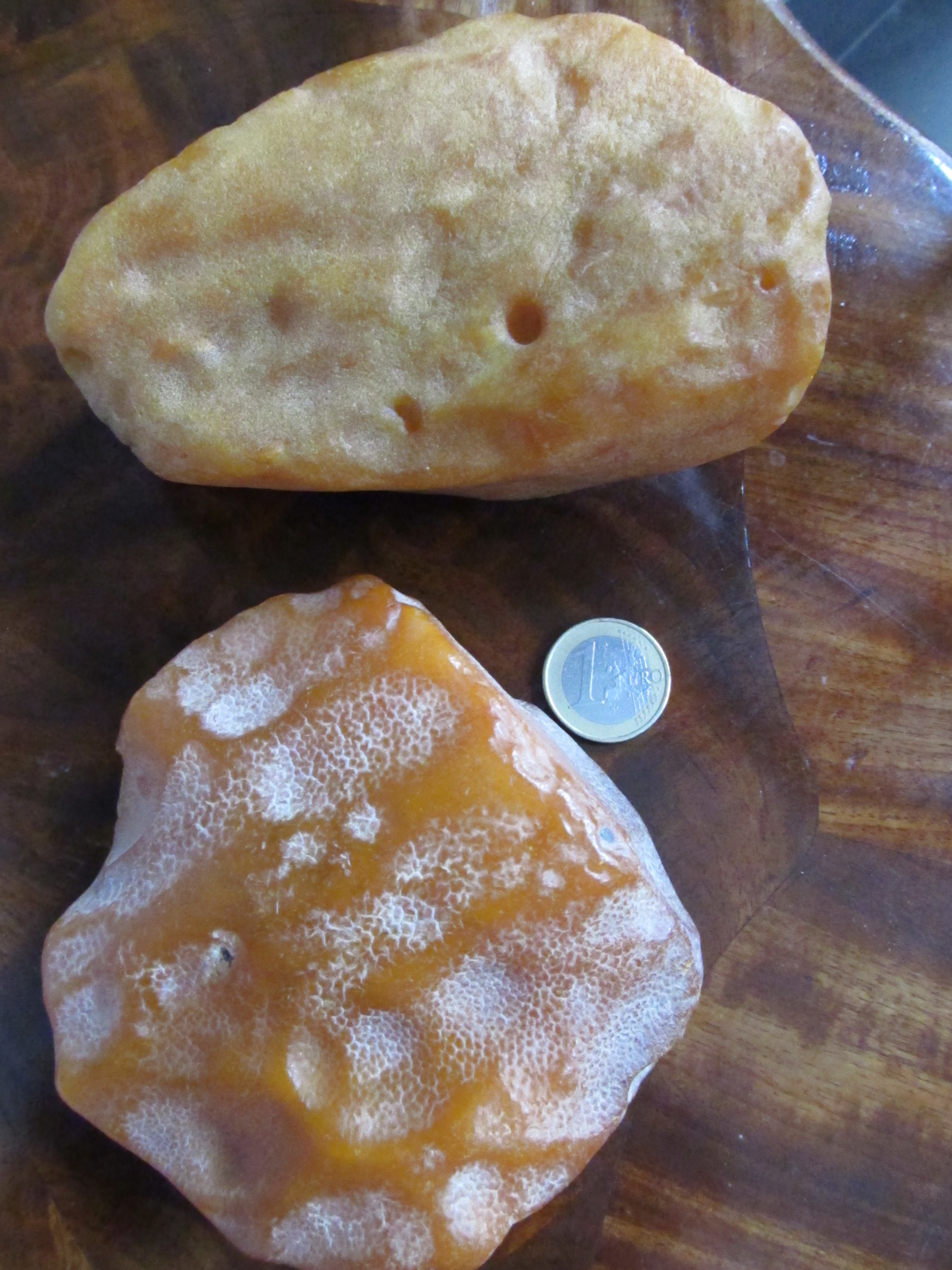 in Danzig ist der größte Bernsteinhandelsplatz. Der Bernstein, der an deutschen Küsten nach Sturmfluten zu finden ist, ist sämtlich sog. baltischer Bernstein. Übrigens findet man an deutschen Küsten die besten und größten Stücke nicht an der Ostsee, sondern an der Nordsee. Anbei einmal ein Beispielbild von größeren Bernsteinen, die durchaus auch einmal einen vierstelligen Betrag bringen können. Insgesamt ist der Bernsteinmarkt deutlich rückläufig.