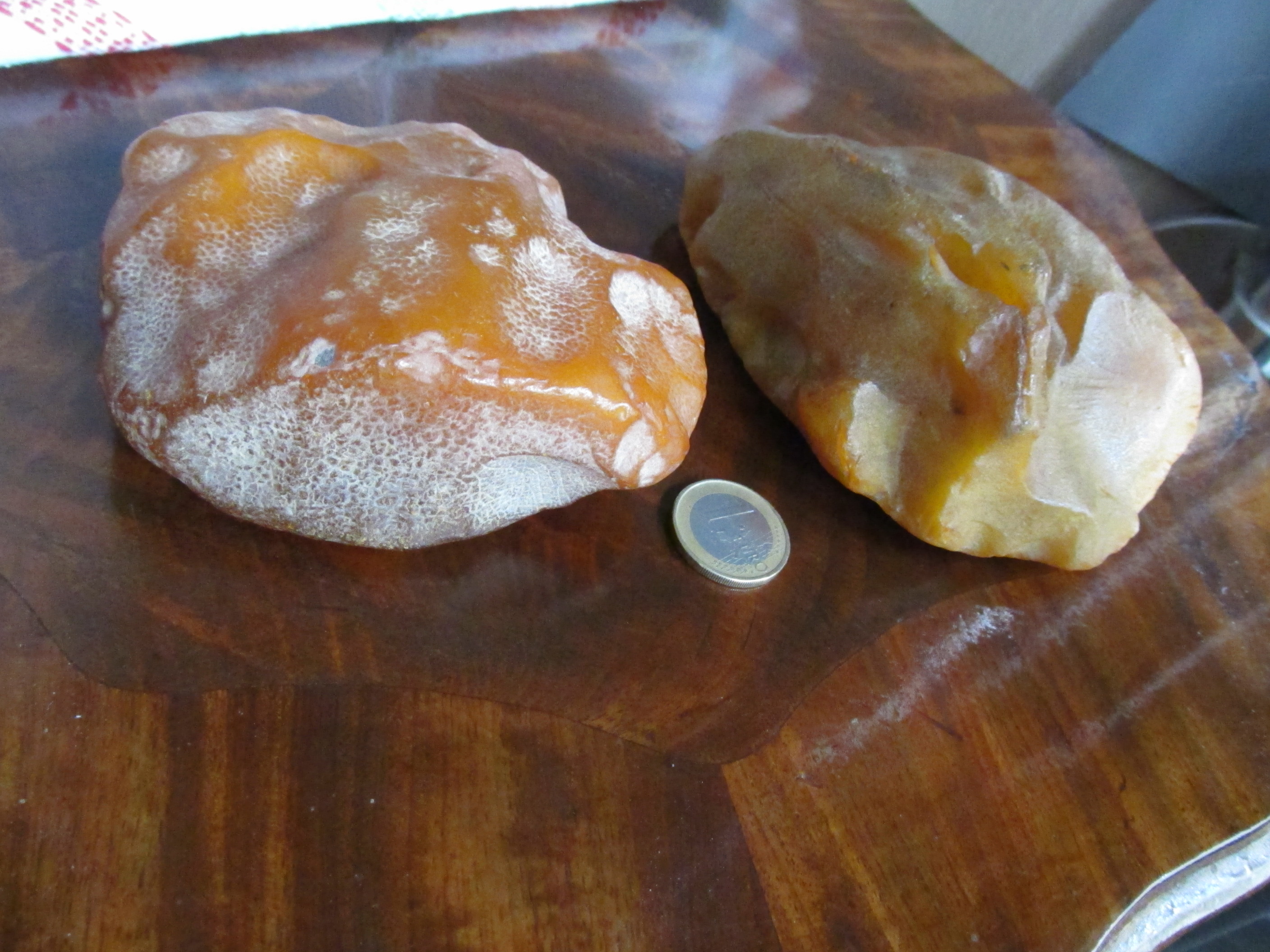 in Danzig ist der größte Bernsteinhandelsplatz. Der Bernstein, der an deutschen Küsten nach Sturmfluten zu finden ist, ist sämtlich sog. baltischer Bernstein. Übrigens findet man an deutschen Küsten die besten und größten Stücke nicht an der Ostsee, sondern an der Nordsee. Anbei einmal ein Beispielbild von größeren Bernsteinen, die durchaus auch einmal einen vierstelligen Betrag bringen können. Insgesamt ist der Bernsteinmarkt deutlich rückläufig.