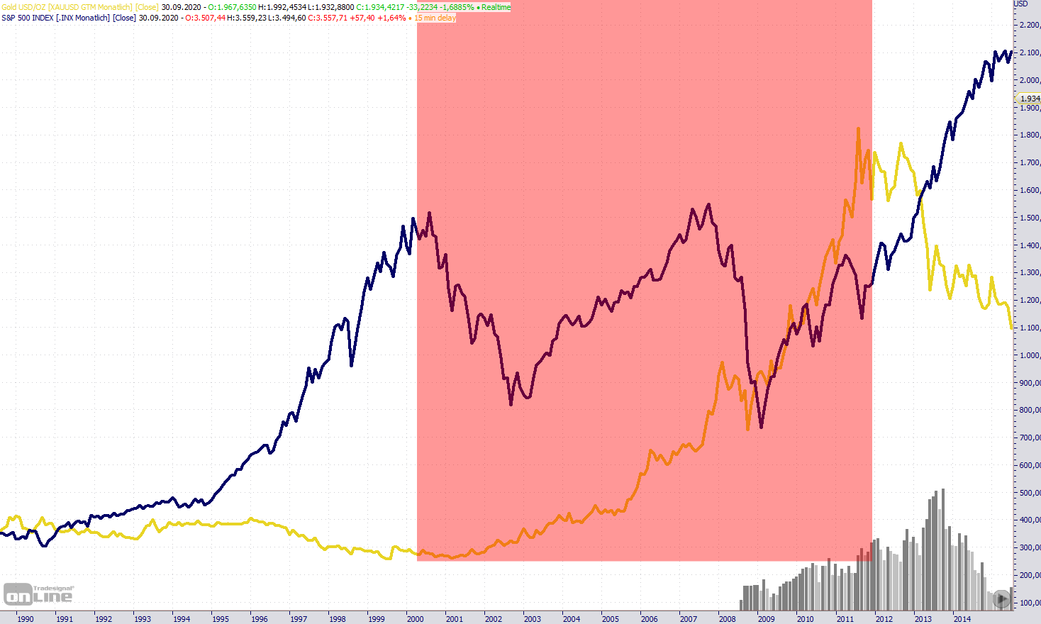 Dieser Analogismus ist eben nicht in Stein gemeißelt. Im Gegenteil! Während der Aktienmarkt fällt oder dahin dümpelt, konnte der POG auch schon mal kräftig zulegen.