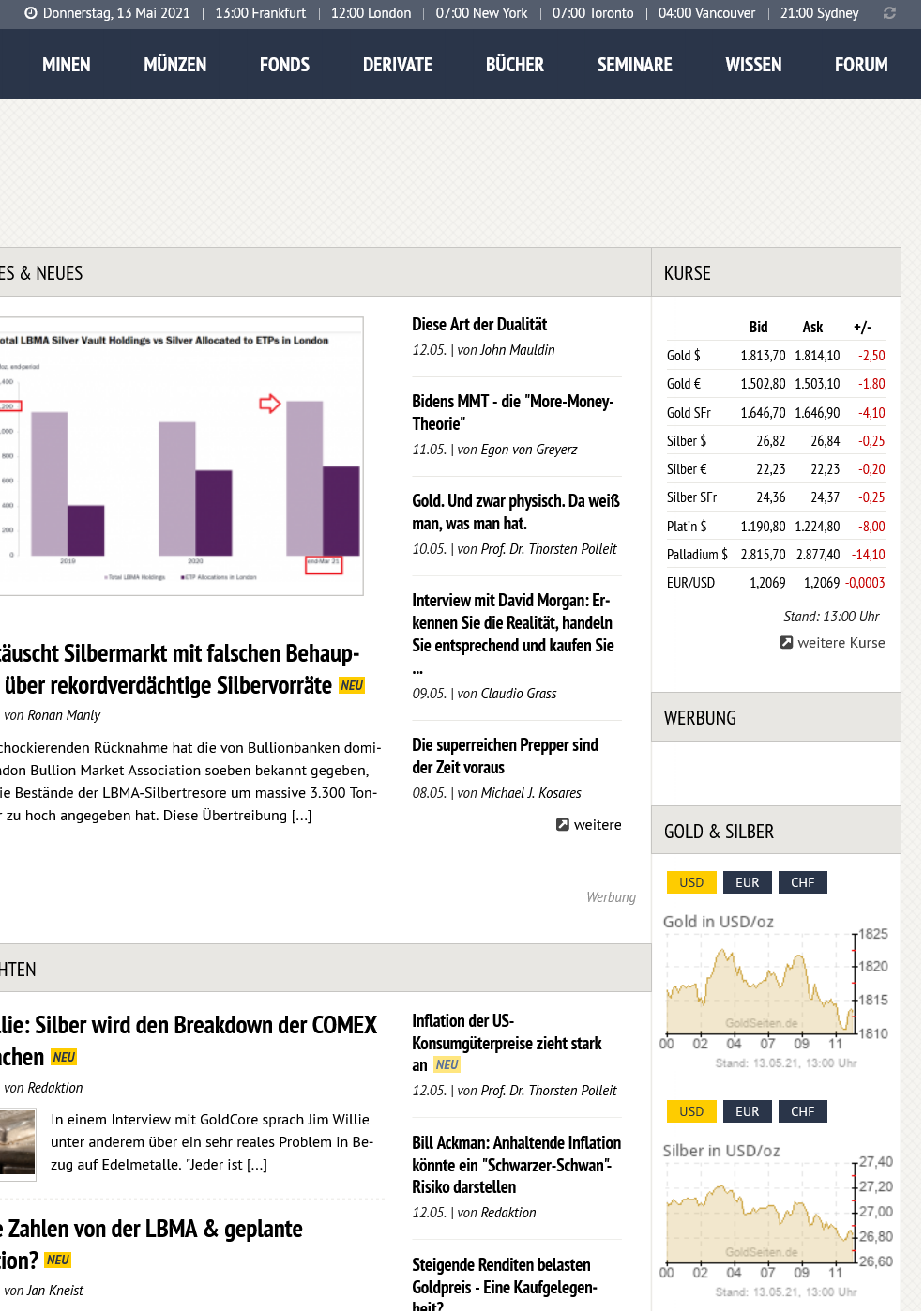 Zudem steigen die Aufgelder eh an, weil die EK-Preise für Händler unkalkulierbarer werden.Klar wird dann wieder Silber in den Markt fließen, aber eben viel weniger als nachgefragt wird.