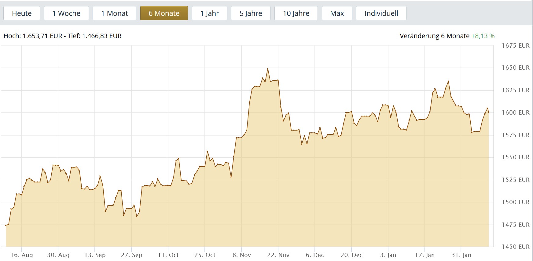 Gold gestiegen, Euro gestiegen, darum beim Kauf für Euro preiswerter.