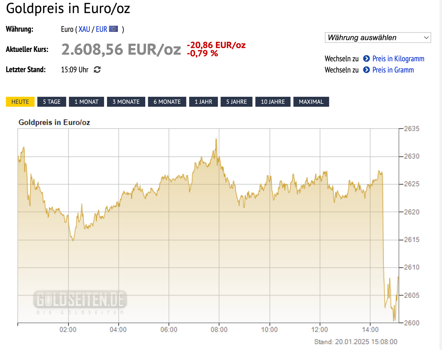 Gold wird heute in Dollar abverkauft und zusätzlich steigt der Euro deutlich. Loose-Loose Situation.