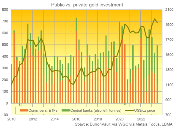 Zwar treiben inzwischen Zentralbanken den Preis und nicht mehr der Mr. NPC Privatanleger, weil es ihm in den letzten 50 Jahren ausgeredet wurde und das Zeug langsam echt teuer wird. Aber trotzdem ist der Anteil, der auf Privatanleger fällt, beträchtlich.