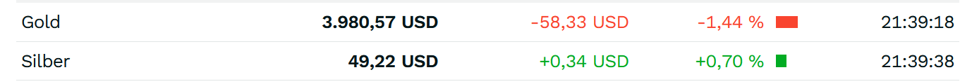 Silber schon 2,5% runter!