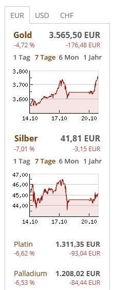 Frau kam gestern mit nem Bündel Scheine um die Ecke und hat gefragt, ob sie Gold kaufen soll. Hab ihr gesagt: „Nicht heute“. Gott sei Dank! Heut gibt ein Vreneli mehr…