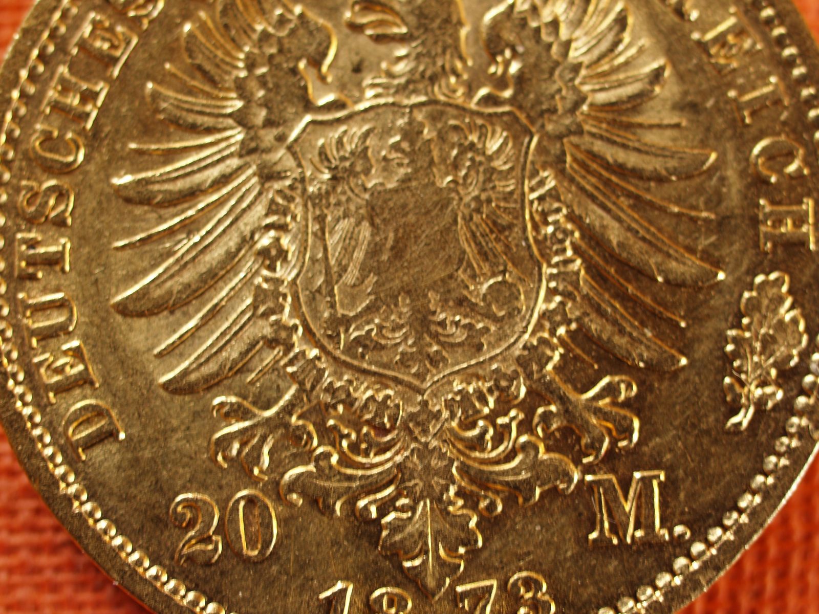 Die Aufschrift "20 M." hatten die 20 Mark Goldmünzen auch schon in den Jahren 1871 und 1872, nicht erst 1873