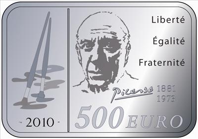 Frankreich 500 € Pablo Picasso (2010, 1 Kg Silber PP)