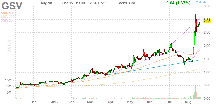 For investors not currently in GSV, I believe a dip to the old 52-week highs at $2.06 would provide a great risk-reward entry on a technical basis to the company. I do not believe we will see a dip to the $2.06 level given the massive volume and accumulation this week, but if it presents itself I see it as a second chance to get along for the ride....