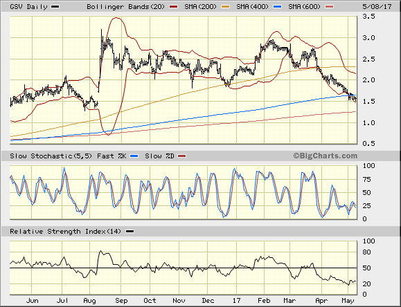 • GSV - ein hoffnungsvoller Wert,in vielen Forum- Depots vertreten,will nicht mitspielen, läßt etwas die Ohren hängen. Weiß Einer mehr ? Gibts was Fundamentales, was die Underperformance während des Goldpreisanstieges der letzten Tage begründen könnte ? Ich könnte es nur charttechnisch erklären, denn da gibt es einen triftigen Grund. Wer hat eine Vermutung od. Hinweis ? :rolleyes: Caldera