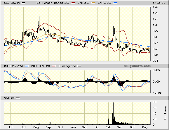 GSV wird immer seltsamer: Sie schloß gestern wie tags zuvor auf Jahrestief = 0,69 C$ in Toronto mit winzigen Umsätzen....