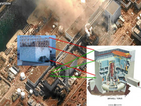 Weder der Reaktordruckbehälter noch das Wasser im Reaktordruckbehälter ist zu sehen, weil da noch eine Betonumantelung ist. Die kann man sehen.