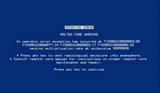 Ja, das ist wirklich tolle Technik ... deine "Fehlermeldung" hat den Charme des kalten Krieges ... genau wie die Atomenergie selber ... .