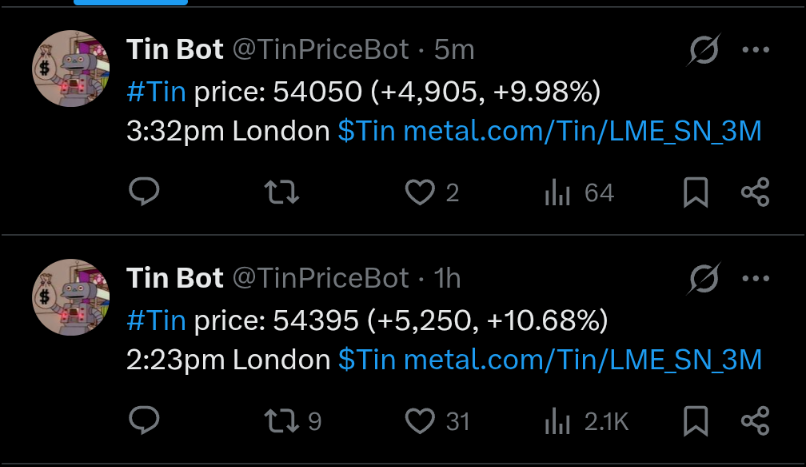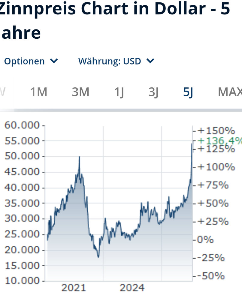 Wer sich tiefgründiger und spekulativ mit Zinn beschäftigen möchte kann sich auch den Australier "Metals X" ansehen (ca. 50% Anteil an der Renison-Mine in co. mit "Yunnan Tin").