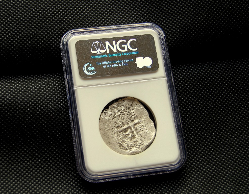 Die vorliegende Acht-Real-Silbermünze, geprägt in Mexico, stammt aus dem Wrack des Schiffes. Sie zeigt auf der Vorderseite ein Bildnis des Spanischen Königs Karl III. mit der Inschrift "DEI GRATIA" (von Gottes Gnaden), darunter das Prägedatum. Auf der Rückseite befindet sich die Inschrift "HISPN.ET.IND.REX (König von Spanien und den Indien) und das Münzzeichen von Mexico City.