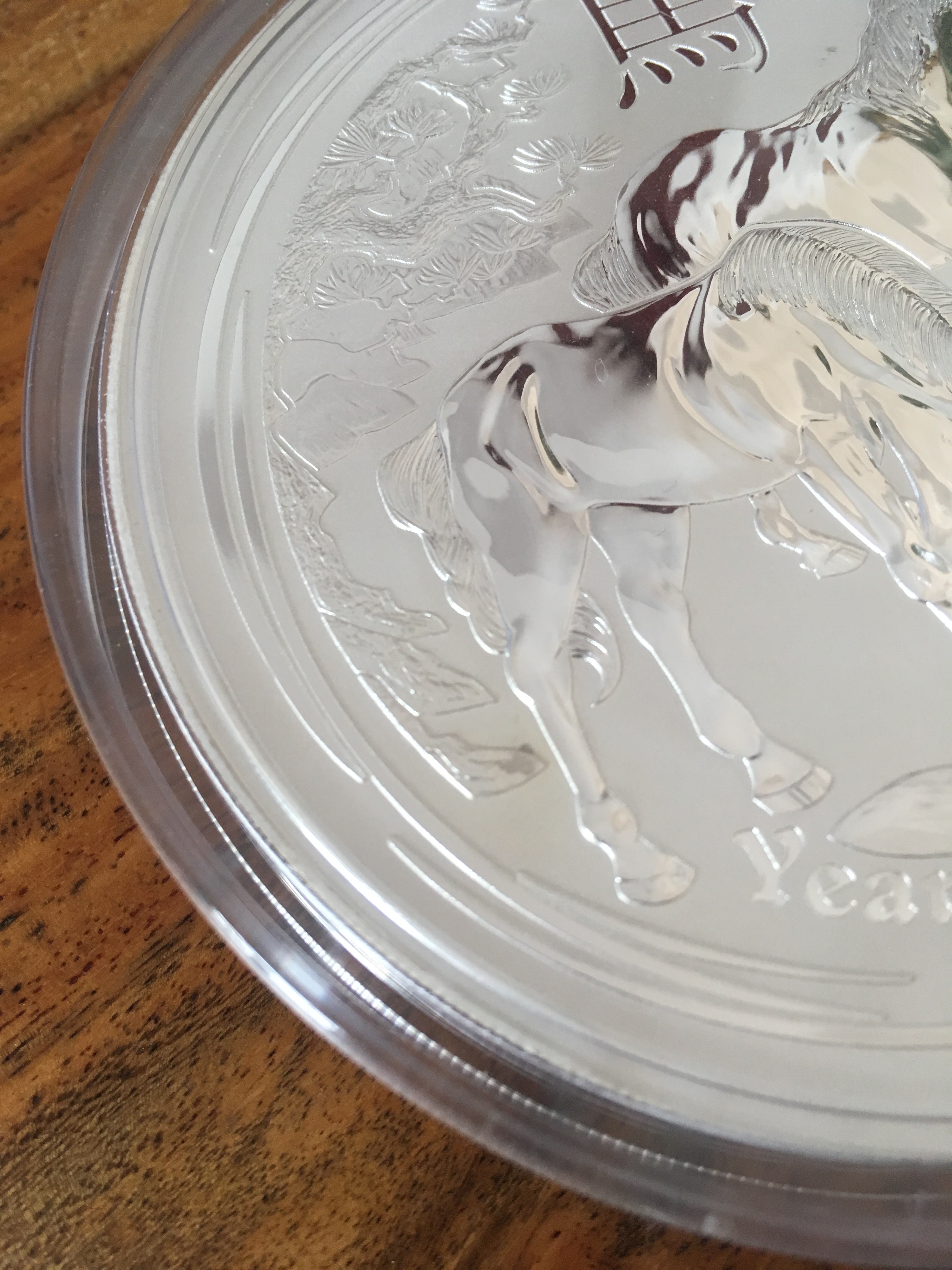 Da ich bislang wenig Beispiele von angelaufenen Silbermünzen und Milchflecken in der Hand hatte, hier ne Frage zu einer 2014er Lunar II Silbermünze.