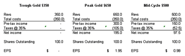 Allerdings sind kleinere Goldprojekte naturgegeben oft weniger wirtschaftlich als große. Das qualifizierte Management einer 50.000 Unzen Jahresproduktions-Grube kostete pro Kopf genau so viel, wie das einer 500.000 Unzen Goldmine. Aber, selbst kleine und hochrentable, das heißt mit guten Goldgehalten versehene Gruben, die Geld verdienen, dürften bald mehr Beachtung finden.