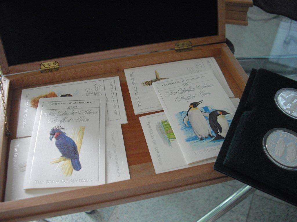 nachdem hier ja niemand meinem Wunsch nachkommt ein Australienunterforum zu gründen, fange ich jetzt einmal an, hier einige weniger bekannte aber sehr schöne Australische Münzen vorzustellen, welche zudem auch noch erschwinglich sind. Ich beginne mit der Serie 'Birds of Australia', die übrigens bis vor kurzem unter dem damaligen Ausgabepreis erhältlich sind bzw. so langsam zu diesem wieder Absatz finden. Nach meiner Auffassung mit die schönsten Silbermünzen, welche die RAM je herausgegeben hat. Vermutlich war die etwas gewöhnungsbedürftige aber durchaus üppige Verpackung Schuld am Mangel an Interesse.