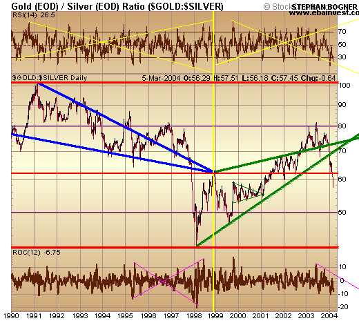 das bedeutet allerdings nicht, dass Silber14 gleich Gold800 bedeutet. Dieses verhältnis dient im Falle eines Aufwärtstrends als Unterstützungs-Ratio, sprich wenn es wieder runtergehen sollte trifft sich Gold bei 400 und Silber bei 7 wieder. Wie gesagt: Wenn Gold jetzt weitersteigt dann kann es sehr gut sein, dass Silber prozentual stärker steigt als Gold, und nach einer Zeit könnte es sein, dass dann mal wieder ne zeit kommt, wo gold stärker steigt als Silber. Im Gold/Silber-Chart von mir hab ich oben und unten grenzen eingezeichnet, in denen ich denke sich die beiden erstmal bewegen und abwechseln. Zur zeit steigt siler stärker als gold wie gesagt.mal schaun was passiert... was gibst spannenderes als wirtschaft in zeiten der meinungsverschiedenheit, in der eine meinung sich durchboxt????