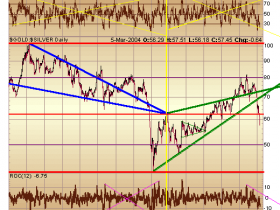 Ich denke Silber KANN nur nach unten brechen, wenn sein großer Bruder GOLD auch entsprechend absinkt. Die Implikationen seiner Silber-Analyse sind leider nicht ganz zuende gedacht, denn wenn er denkt, dass Silber nach unten bricht, dann NUR weil Gold Probleme bekommt. Somit denkt und sagt er durch die Blume MEINES ERACHTENS, dass Gold es demnächst nicht schaffen wird zu steigen, sonst würde er durch seine Chartanalyse keinen bearishe sondern einen bullishen Keil sehen. Ausser er denkt, dass Silber in den nächsten Tagen und Wochen sich von der Umklammerung&Preisbeeinflussungs-Dominanz befreien kann und trotz steigendem Goldpreis fallen wird/könnte.