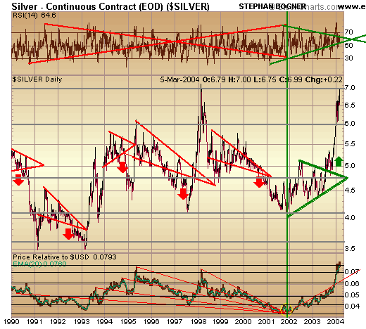 ZitatWenn der Silberpreis regelkonform aus dem Bearkeil nach unten ausbrechen sollte, müßte mit einer konsolidierung zurück in den 6,0-6,2 $ Bereich gerechnet werden.