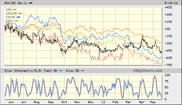 Hier mal ein Jahres Vergleich IDC -- GOR -- RR vs dem Index GMXJ für Juniors + Explorer sowie dem XAU für Großminen.
