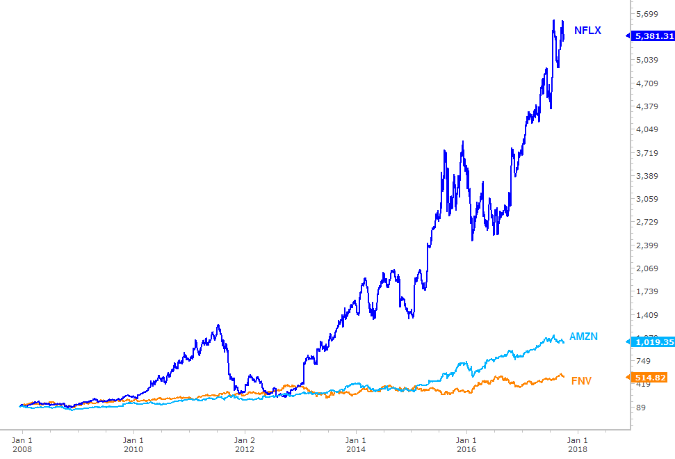 ....Nicht jeder kann auf lange Zeitraum immer gut bzw best Aktien heraus finden. Und wenn man die Best Performance Aktien in Gold Sektor wie FNV nimmt, dann sollte man mit AAPL, GOOGL, AMZN, Facebook, Netflix ... usw ... im Vergleich machen. ....