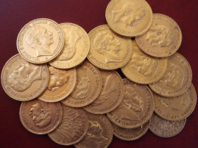 Dieses kleine Lot war der Beginn meiner Goldmünzen. Wann es war, weiss ich nicht mehr genau, aber die Doppelkrone hat damals 192 DM gekostet, und das bei der Firma Schimmer. Ab da habe ich dann kontinuierlich gekauft.
