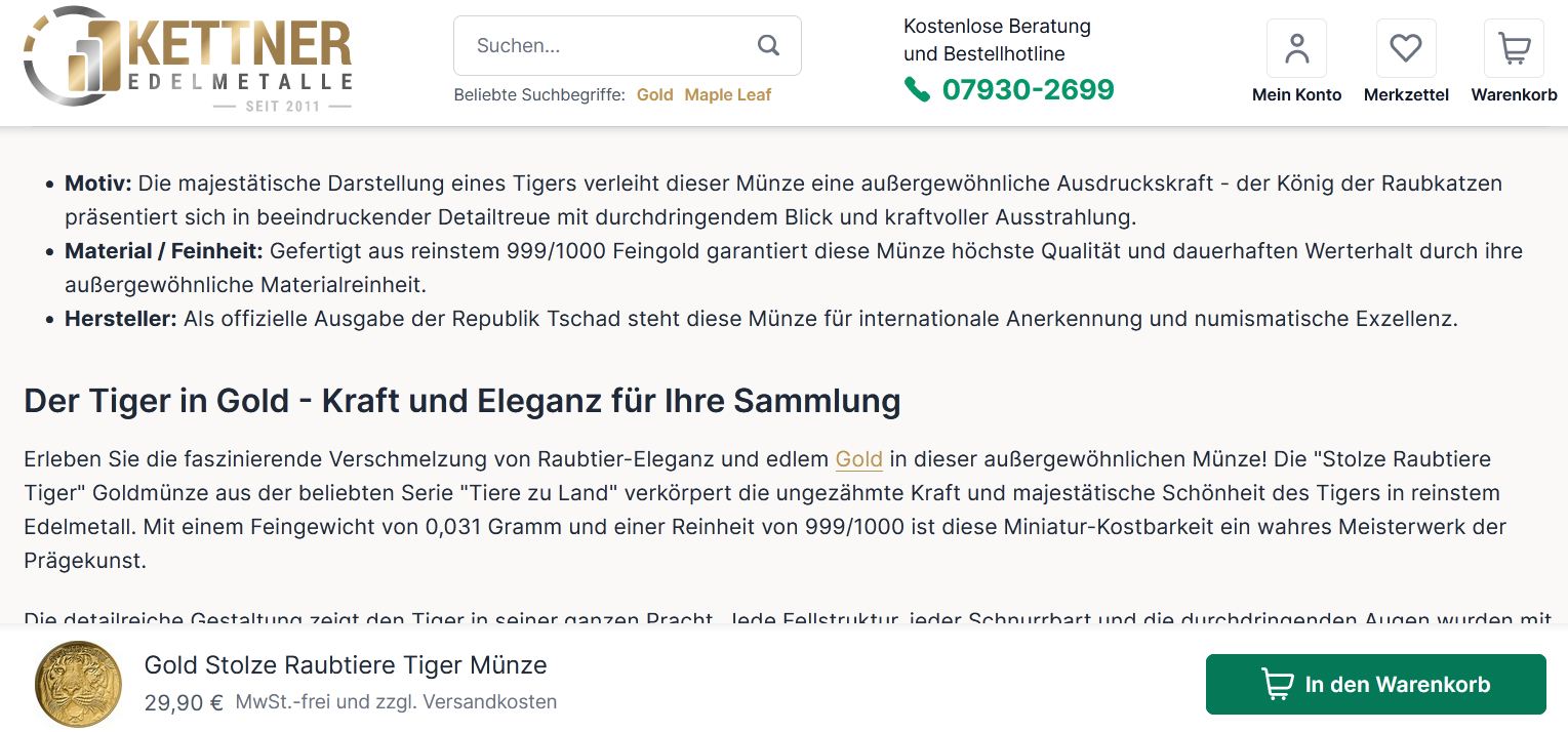 • Ein Schnäppchen. Nur 30.000 die Unze.