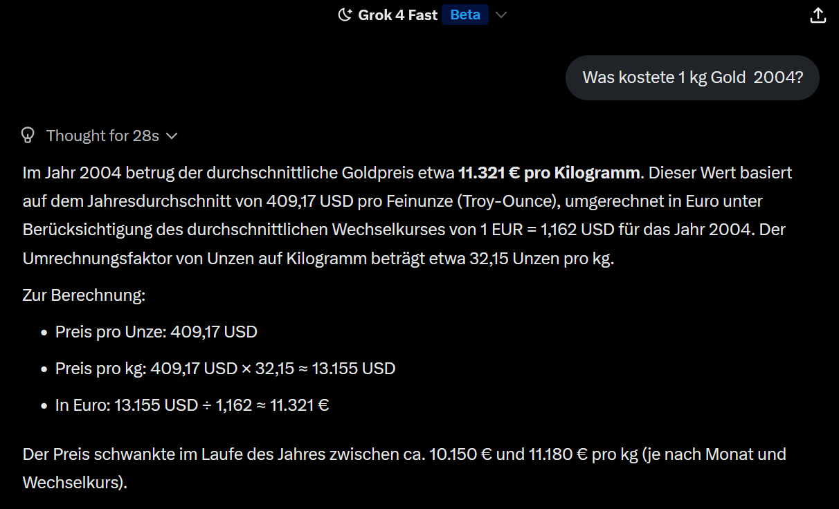 Als ich damals mit dem Kauf anfing, hätte ich jeden Monat 1–2 Unzen Gold kaufen können. Mein Schwerpunkt lag jedoch beim Silber. Bei denen, die früh anfingen, war es – je nach Zeitpunkt und Budget vermutlich ähnlich, bzw. etwas mehr oder weniger.