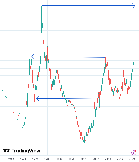 Ihr schaut zu sehr auf das Gold. Alle großen Bullruns seit den 2000er sind mit einem stark steigenden Silberpreis bei stagnierenden bzw. fallenden Goldpreis geendet. Das war immer der einfachste Indikator.