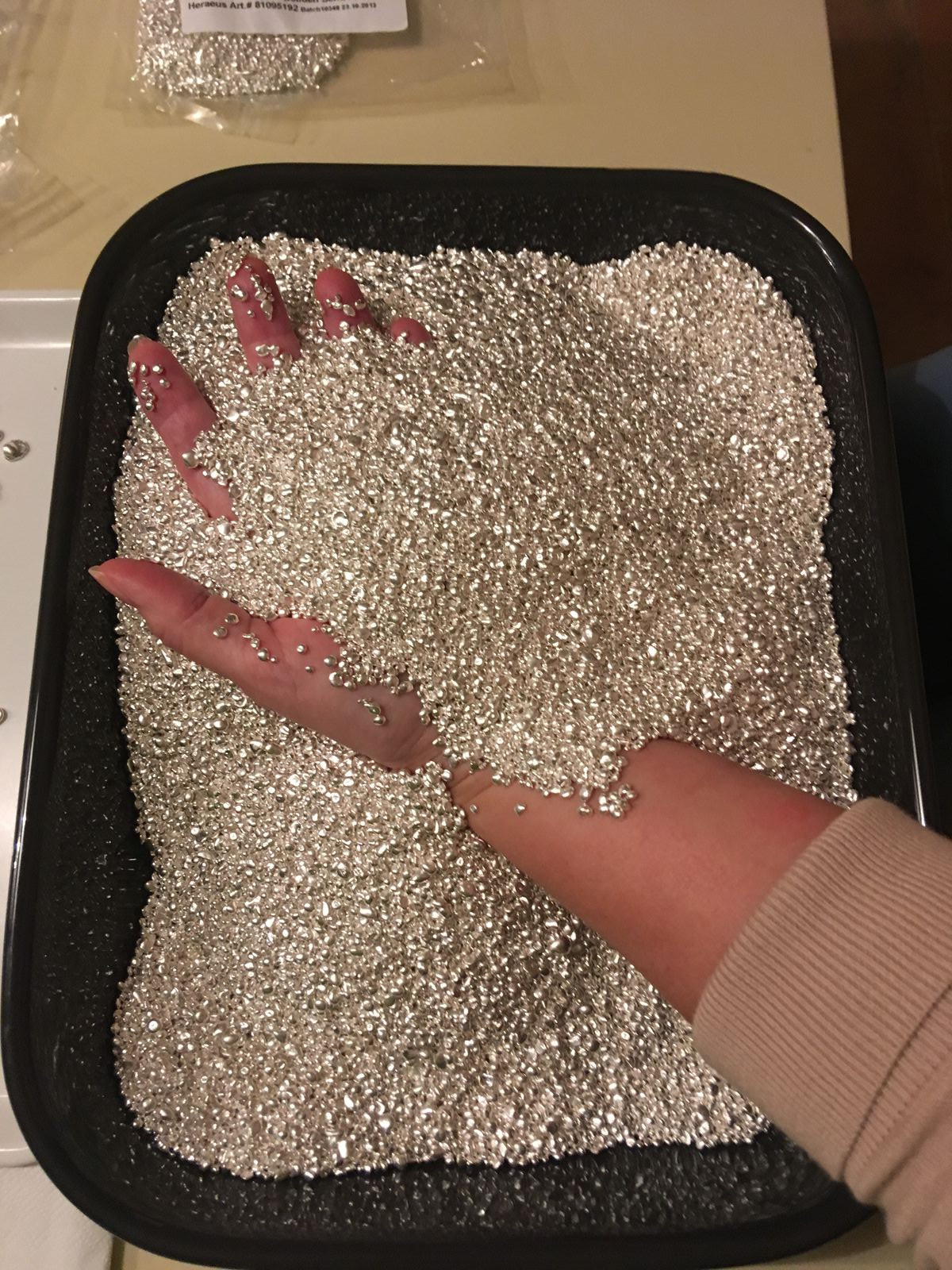 Ein Handbad im Silbergranulat, sehr erfrischend