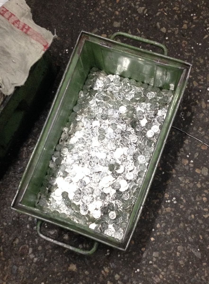Selbst geprägte Marijataler (waren als Notgeld gedacht) schaufeln.... (inzwischen vertauscht)