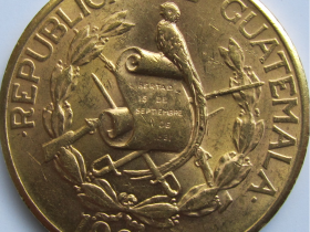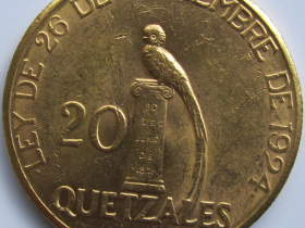 Um welche Müzen es sich handelt, ist mir klar: 20 Quetzales Guatemala, 1926, geprägt nach dem Vorbild der 20$-Goldstücke, also 900er fein, 34mm Durchmesser und 33,43g Rauhgewicht. Geprägt wurden 49.000 Stück, von denen wohl nicht alle überlebt haben, und daher eine nicht ganz alltägliche Münze. Das gute Stück hat leider schon Gebrauchsspuren und am Rand eine kleine Prüfspur (siehe Bild).