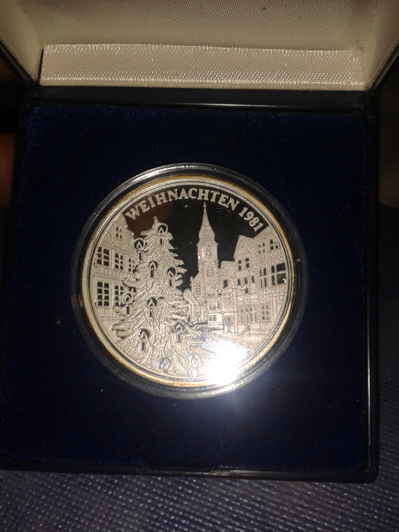 Die Weihnachtsmünze 1981 ist Spiegelglanz 1/2 oz 1000/1000 Feinsilber & Zertifikat