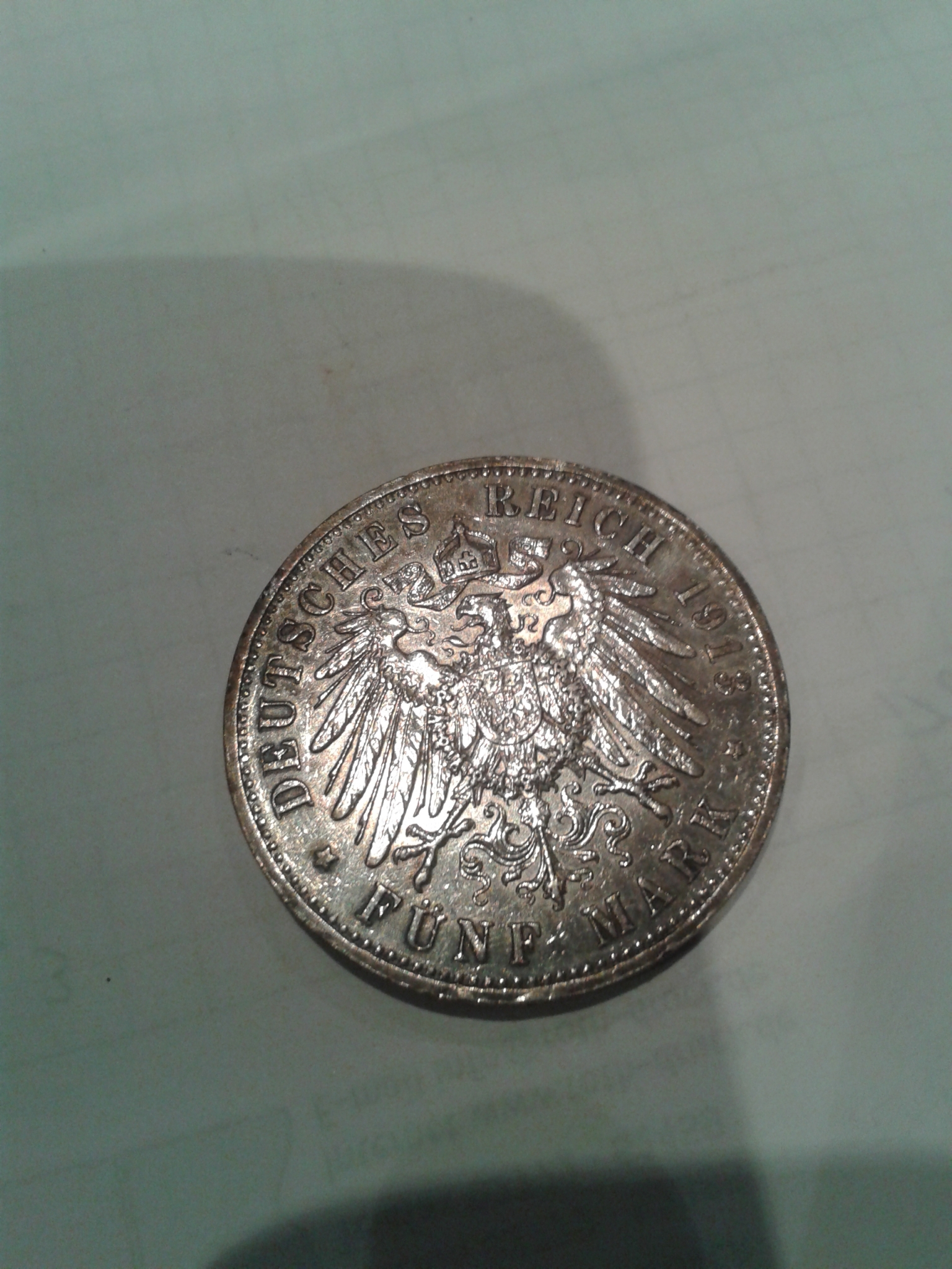 Die 5 Pfennig Münze (Jahr 1876), die 5 Reichsmark und 2 Reichsmark Münze sind bestimmt nicht aus Silber, da ehemaliges & gängiges Zahlungsmittel. :?: ?)