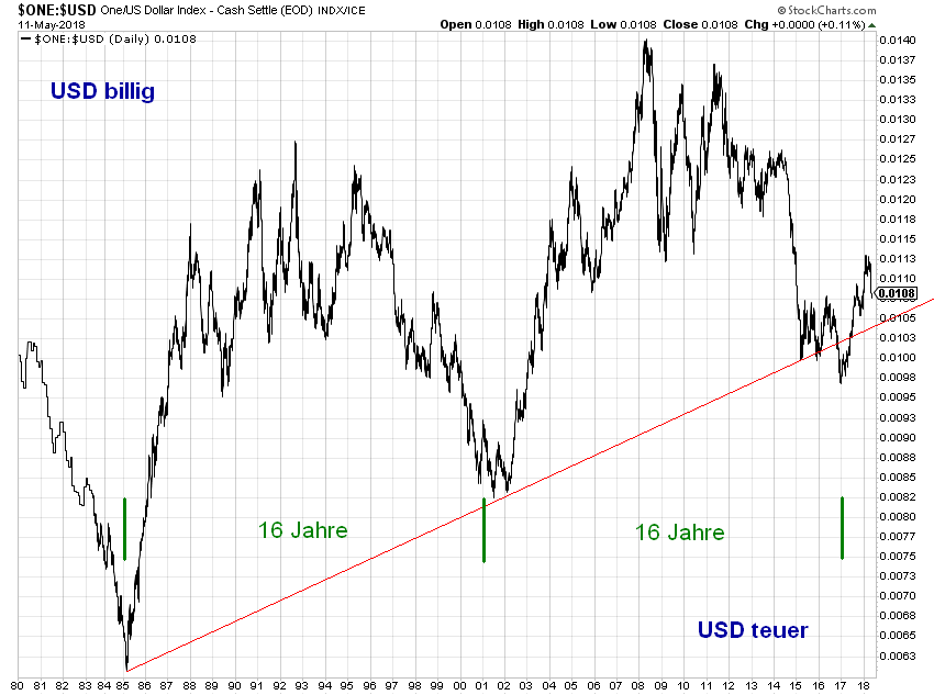 Und nur kurze Zeit ist Dollar "teuer"2001 hat man nach 9/11 den Dollar in die billige Zone gepusht