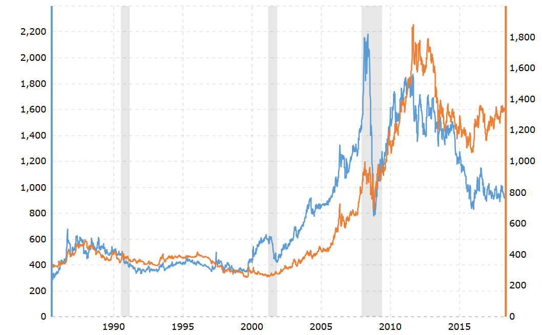 https://www.macrotrends.net/25…num-prices-vs-gold-prices -