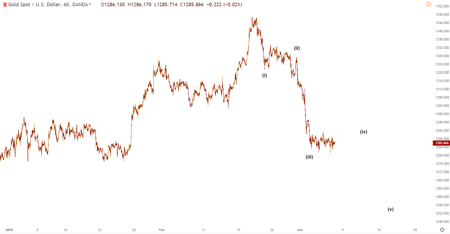 Welle B (abc) könnte zunächst bis 1.300 $, dann 1.290 $ und abschließend auf ca. 1.310 $ steigen.